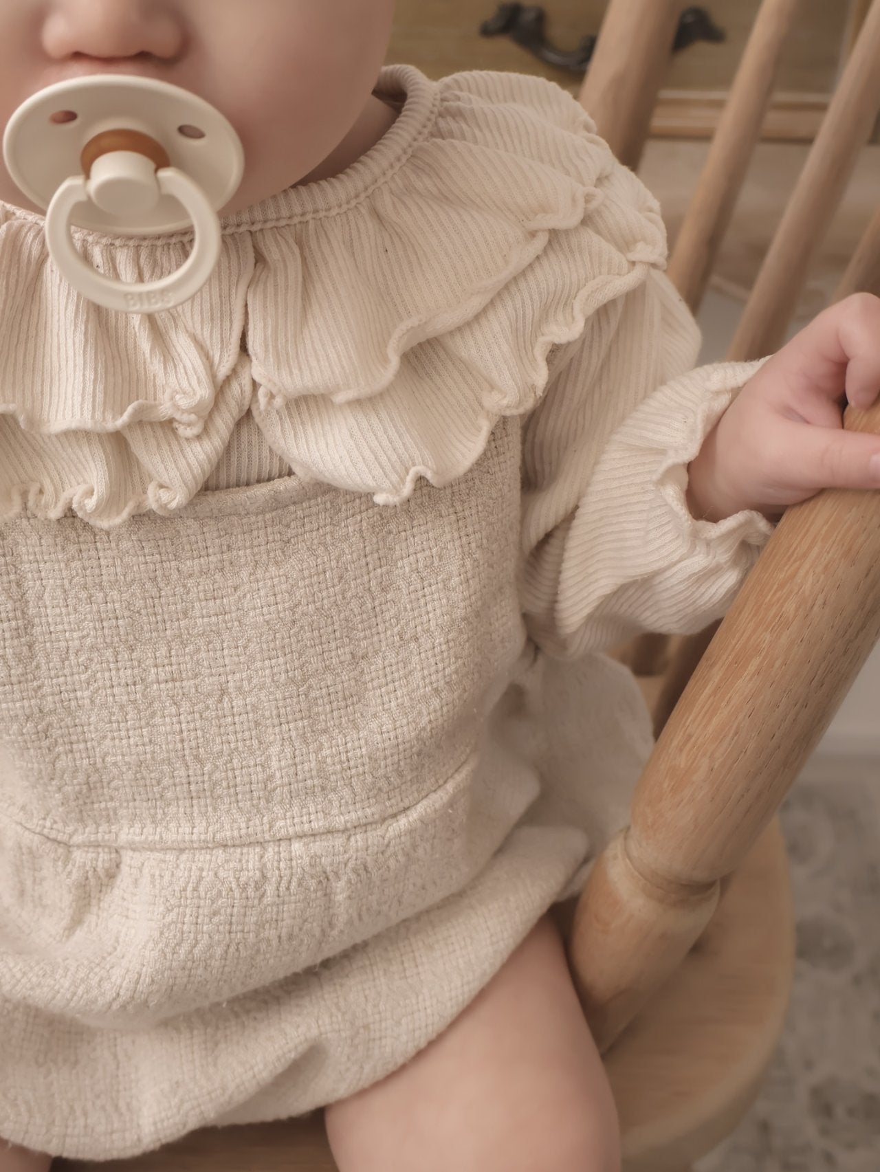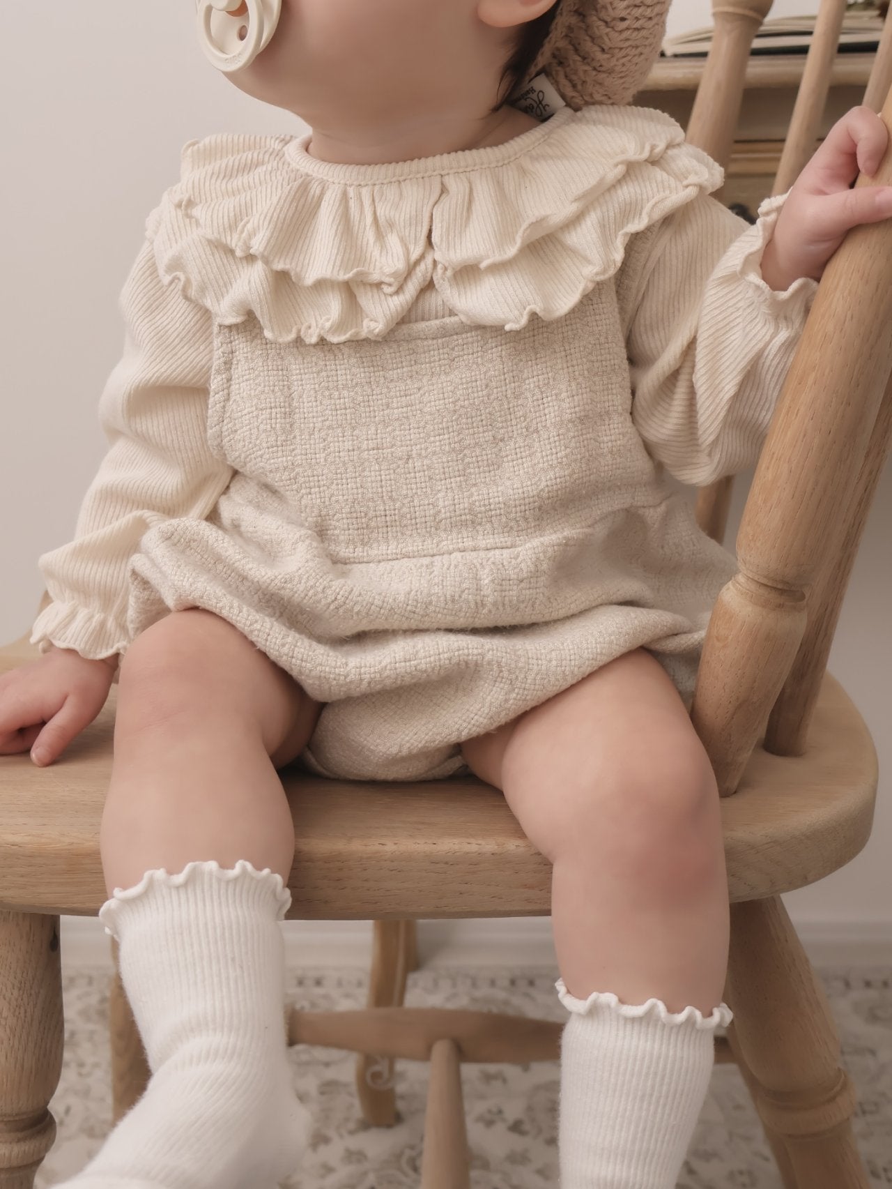 這款充滿法式浪漫氣息的荷葉領上衣,是寶寶衣櫥裡不可或缺的百搭單品。柔軟親膚的羅紋棉材質,搭配精緻的雙層大荷葉領設計,無論是單穿還是作為連身褲、吊帶裙的內搭,都能瞬間提升整體的造型感與精緻度。