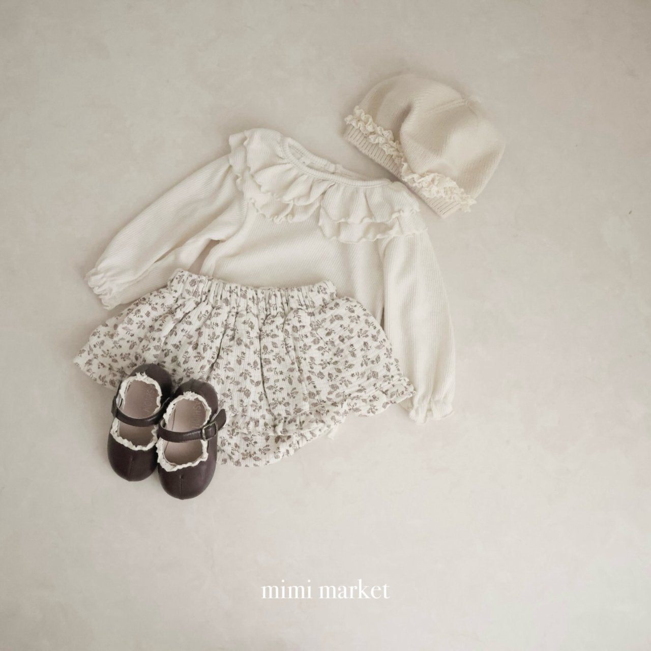 韓國童裝|氣質大荷葉領羅紋棉上衣MM09