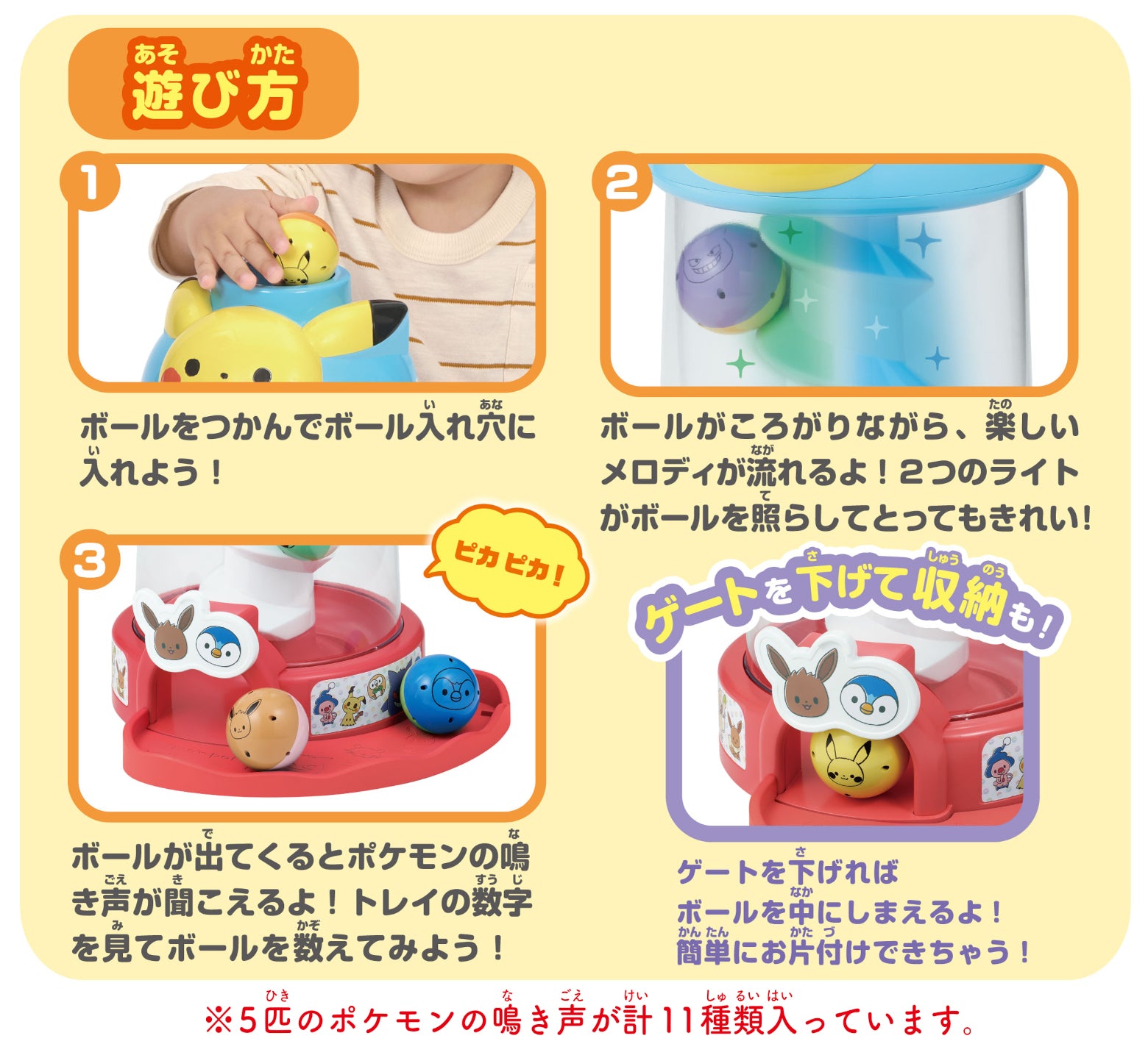⚡️ 5款人氣角色滾球:內附 5 顆印有不同寶可夢的滾球(比卡超、伊布、耿鬼、波加曼、木木梟),色彩鮮豔,亦可單獨作為抓握玩具。